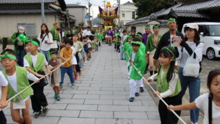 文化 秋祭り(本宮)②子どものロープ引き25’10.12 本宮当日は、旧道で屋台にロープをくくり、辻川区を将来担う子どもたちにひっぱてもらう時間を設けています。▲子どものロープ引き①▲子どものロープ引き② 2025.10.12 文化