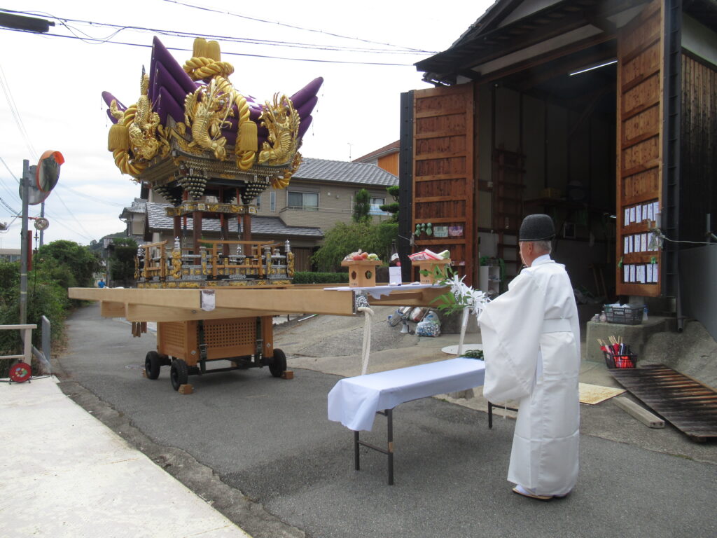 屋台お祓い25’9.28 14時 文化 2025.09.29 屋台の脇棒が割れて、昨年修理をしました。本年秋祭りを実施するに当たり、区長、協議員、木方、棒端、消防団、青年団参加のもと、神主さんに屋台の安全運行を祈願してもらいました。 ▲神主さんに屋台の安全運行祈願のためのお祓いをしてもらっています!! ▲お祓い中!! ▲脇棒受けが以前より幅が広くなりました!!