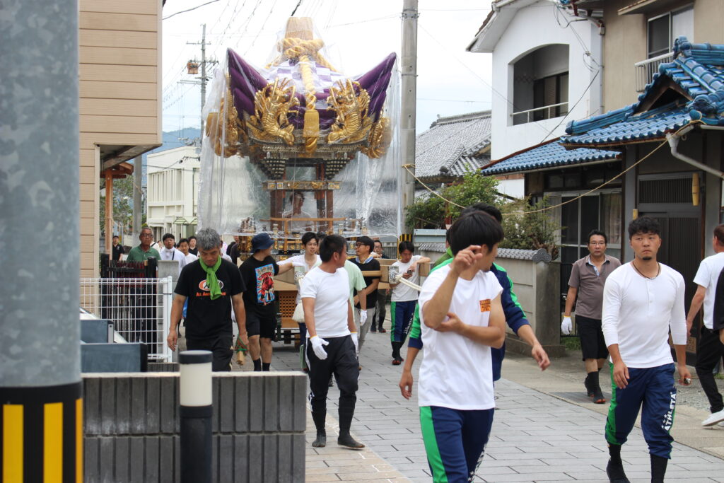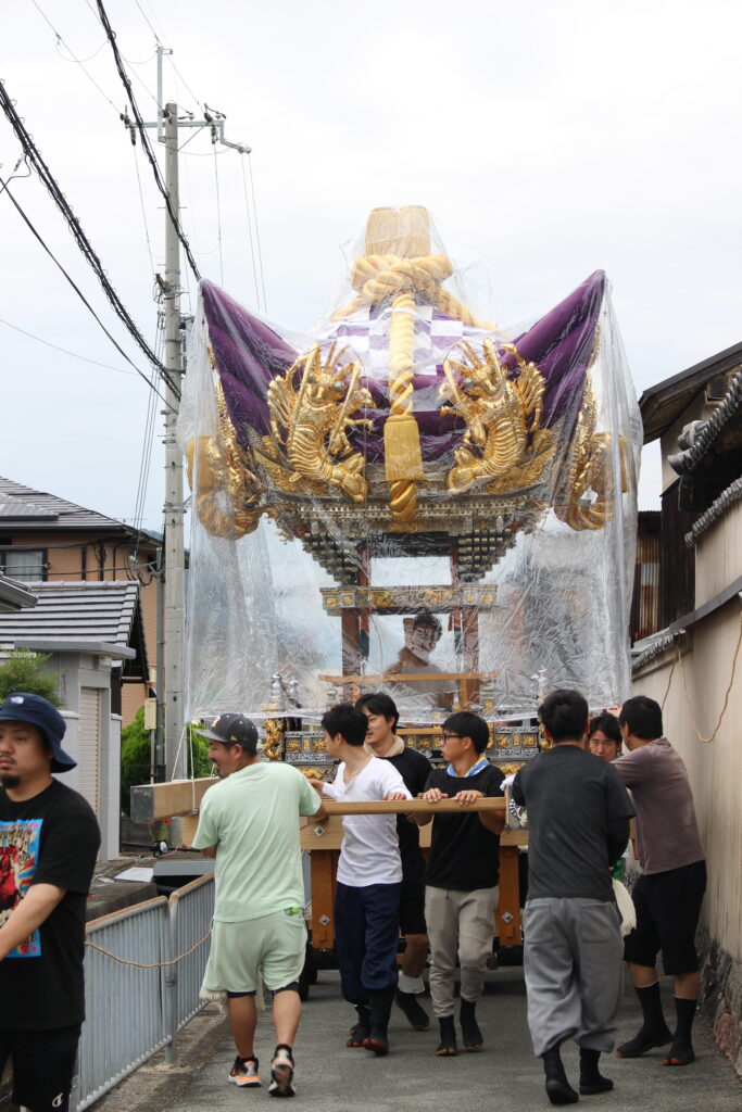 屋台肩合わせ25’9.28 15時 文化 2025.09.29 天気も心配されましたが、肩合わせ、最後まで何とかもちました。脇棒受けの幅が少し広がったせいで、安定感が少し増したようです。秋祭りがとても楽しみですね。 ▲脇棒受けが少し広がったので、よく気をつけて!! ▲旧道を!! ▲差し上げが決まっています!!