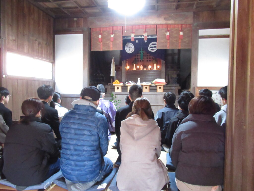 PTA中学校合格祈願祭’26.1.11 文化 2026.02.172026.02.16 11時より、中学校PTA主催の高校受験の合格祈願祭が鈴の森神社の本殿で行われました。熊野神社の田郷宮司に来ていただき、受験生11名と保護者に祈祷を行ってもらいました。 ▲受験生も真剣に参加をしていました!!