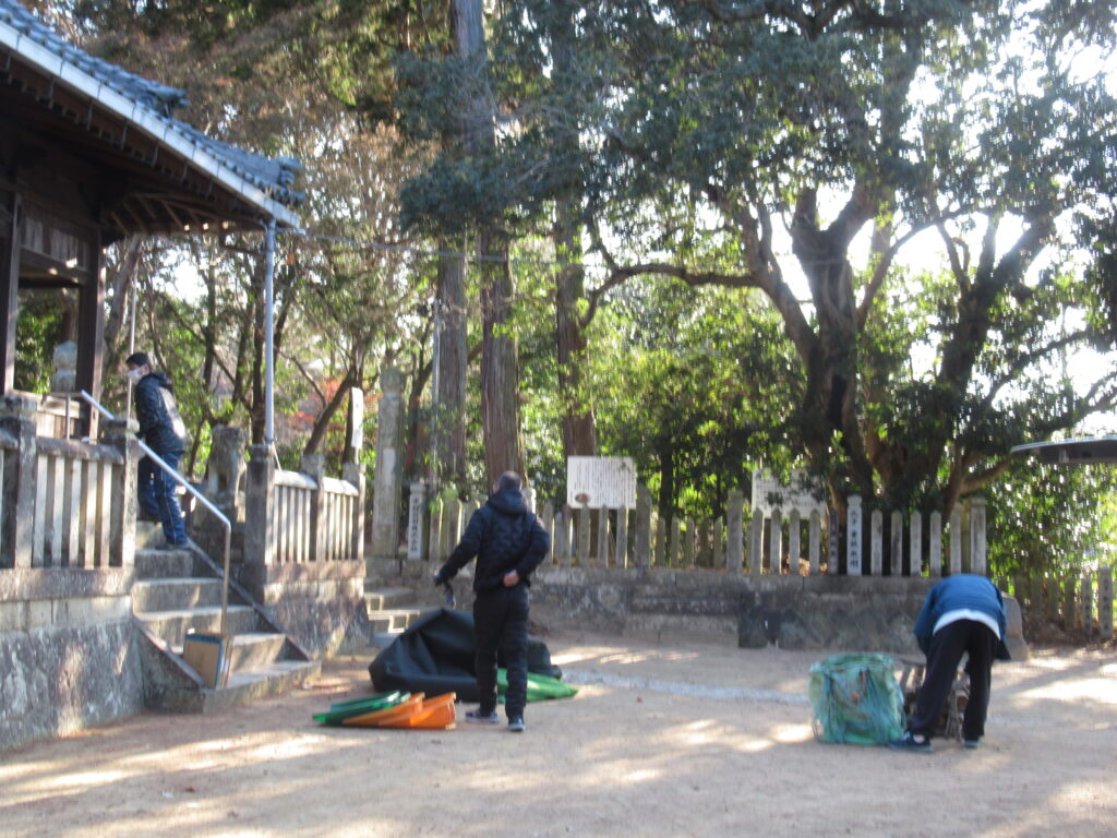 節分祭 歳灯(さいと)準備’26.2.1 文化 2026.02.16 朝9時より鈴の森神社で、節分祭2/3の準備を行いました。拝殿に幕と提灯をつけました。また、境内の落ち葉や枝などを集めて、祭灯(さいと)の用意もしました。 ▲幕と提灯を飾り付けました。 ▲落ち葉や枝を集め。祭灯(さいと)の用意をしました。